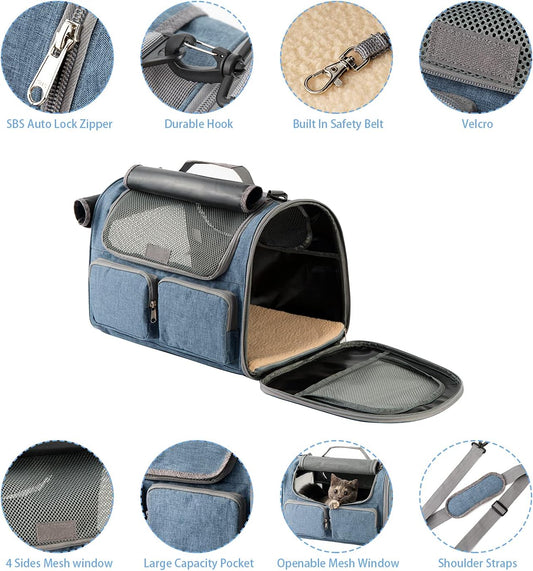 Small Pet Carrier for Cat - Cat Carrier Airline Approved under Seat - TSA Approved Pet Carrier Mesh Window,Dog Airplane Carrier,Portable Soft Cat Transport Carrier,Black