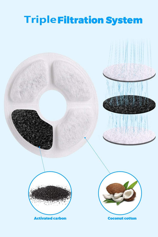 Cat Water Fountain Filter Replacement, 16 Pack Activated Carbon Filters for Pet Fountain, Triple Action for Cats, Dogs, Multiple Pets