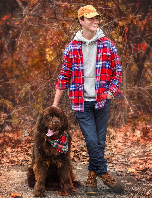 Christmas Dog Bandana in Tartan Plaid - Holiday Cozy Red Flannel Plaid Pet Bandana. Cute Dog Accessory for Fall and Winter for Large Medium and Small Dogs.