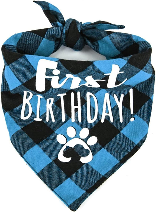 Classic Checkered Dog Bandana Cotton Bandana Puppy Neck Scarf Pet Triangle Birthday Scarf for Small Medium and Large Dogs Cats (Blue)