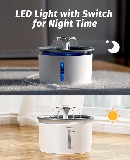 Cat Water Fountain, 85Oz/2.5L Pet Water Fountain Indoor, Automatic Dog Water Dispenser with Switchable LED Lights, 2 Replacement Filters for Cats, Dogs, Pets (Dark Gray)