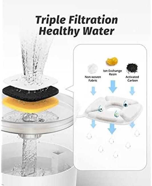 Cat Fountain Filter Replacement, Cat Water Filters with Three Stage Filtration System for 84Oz/ 2.5L Automatic Pet Fountain Dog Water Dispenser, 8 Packs