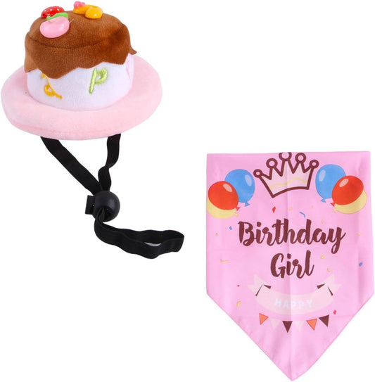 Dog Birthday Triangle Scarf with Cute Doggie Birthday Cake Party Hat, Pet Birthday Costume Accessories Headwear for Puppy Cat Small Dog Breeds(Pink, Cake Balloon)