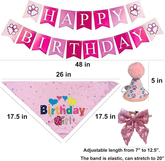 Dog Birthday Bandana Hat Scarf Set, Dog Birthday Party Supplies Dog Bandana Hat with Numbers Scarfs Happy Birthday Banner with Cute Dog Bow Tie Collar Boy Girl Puppy Birthday Hat Scarf for Dog (Pink)