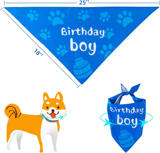Dog Birthday Bandana Boy, Dog Birthday Party Supplies for Small, Medium, Large Dogs Puppy Birthday (Blue-Bandana)