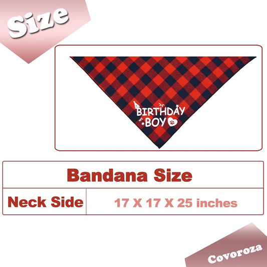 Dog Birthday Boy Bandana and Hat Set “Birthday Boy” Print Plaid Dogs Party Supplies Triangle Scarf Bibs for Small Medium Large Pets Red