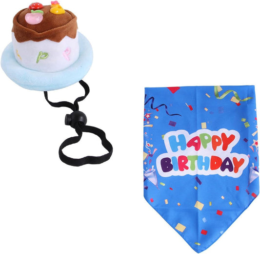 Dog Birthday Triangle Scarf with Cute Doggie Birthday Cake Party Hat,Pet Birthday Costume Accessories Headwear for Puppy Cat Small Dog Breeds (Blue, Cake Ribbon)