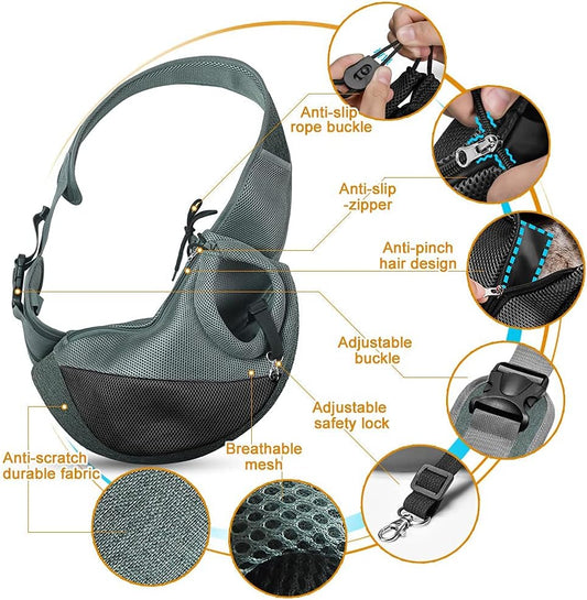 Dog Cat Sling Carrier, Adjustable Padded Shoulder Strap, with Zipper Pocket for Outdoor Travel (Black-Mesh, M - up to 10 Lbs)