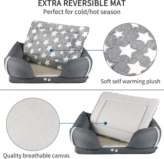 26"-48" Ultimate 2 In1 Dog Bed Dog Sofa with Extra Reversible Pad (Warm&Cool), Water Repellent Removable Washable Cover, Waterproof Non-Slip Bottom, Soft Sleeping Bed for Dogs 25-110Lbs