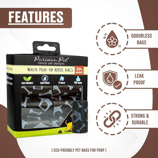 Eco-Friendly Dog Poop Bags, 8 Rolls, 20 Bags per Roll, Unscented, Leak-Proof, Perfect for Cleaning up after Your Pet